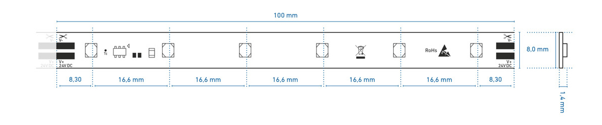 Auftragsspezifische Fertigung/Beschaffung50413234 kaltweiß | 9404000 K117 lm/W560 lm/m9012004,8 W/m