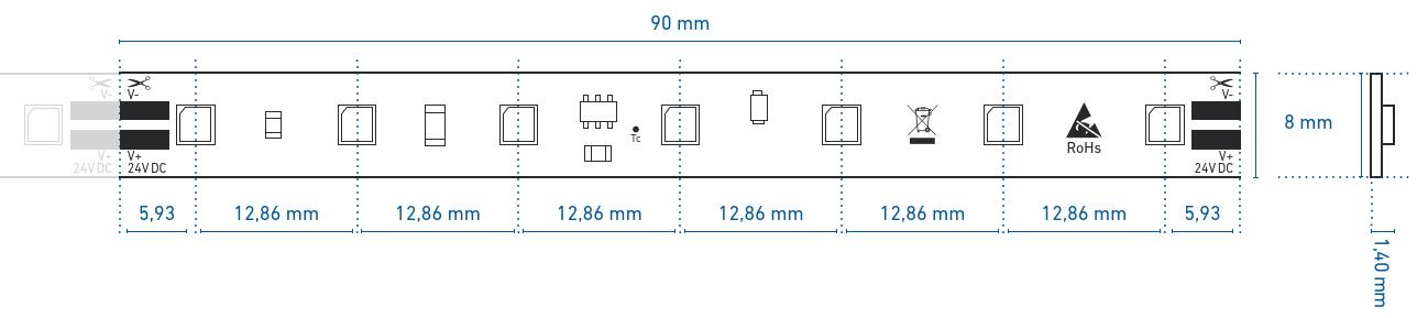 Auftragsspezifische Fertigung/Beschaffung50016034 kaltweiß | 9404000 K166 lm/W2086 lm/m96D712,5 W/m522 cm