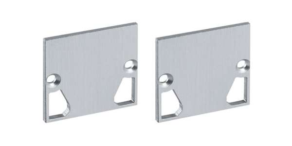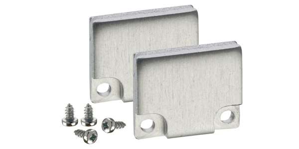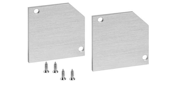 | 2 x Endkappen mit schraubloser Sichtfläche, Aluminium, eloxiert, Stärke (ohne Befestigungslasche): 2 mm, inkl. 4 Schrauben | schraubbar | 2×60×75 mm (l×b×h) | | aluminium |  |