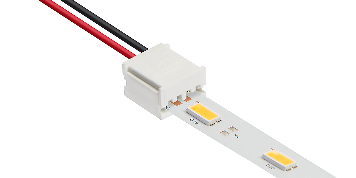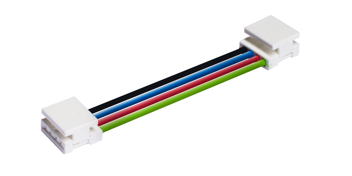 | LED-Streifen Verbinder 8 mm mit 40 mm-Kabel, zum werkzeuglosen Verbinden von 2- und 4-poligen Streifen, 1 Stück | 3-48 VDC | Indoor | |  |