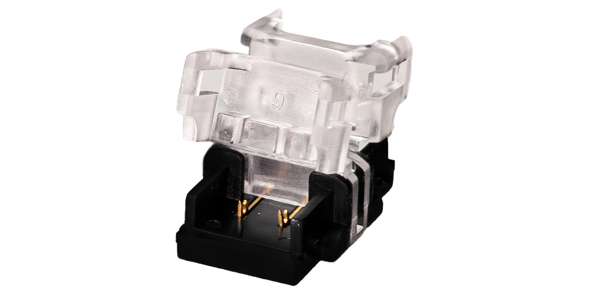| LED-Streifen Verbinder-Set 10FF2, 10 mm, zum werkzeuglosen Verbinden von 2-poligen Streifen, 5 Stück | 3-24 VDC | | |  |