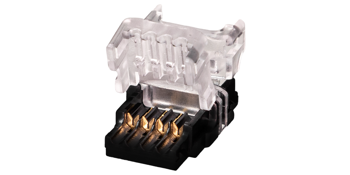 | LED-Streifen Verbinder-Set 10FF4, 10 mm, zum werkzeuglosen Verbinden von 4-poligen Streifen, 5 Stück | 3-24 VDC | | |  |
