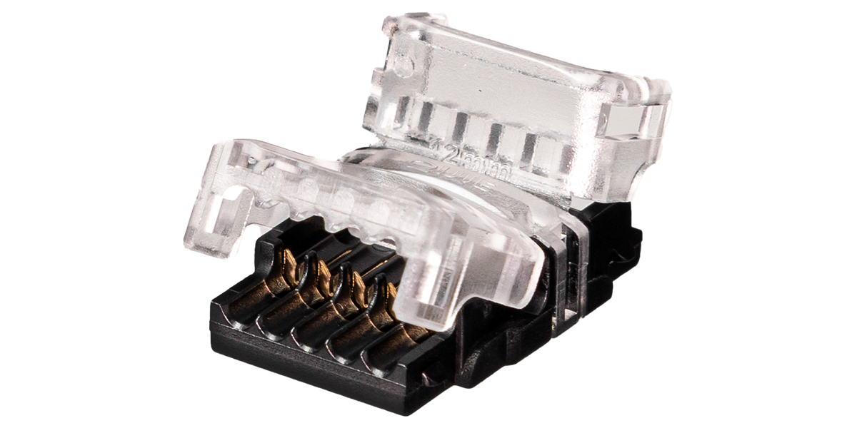 | LED-Streifen Verbinder-Set 10FF5, 10 mm, zum werkzeuglosen Verbinden von 5-poligen Streifen, 5 Stück | 3-24 VDC | | |  |