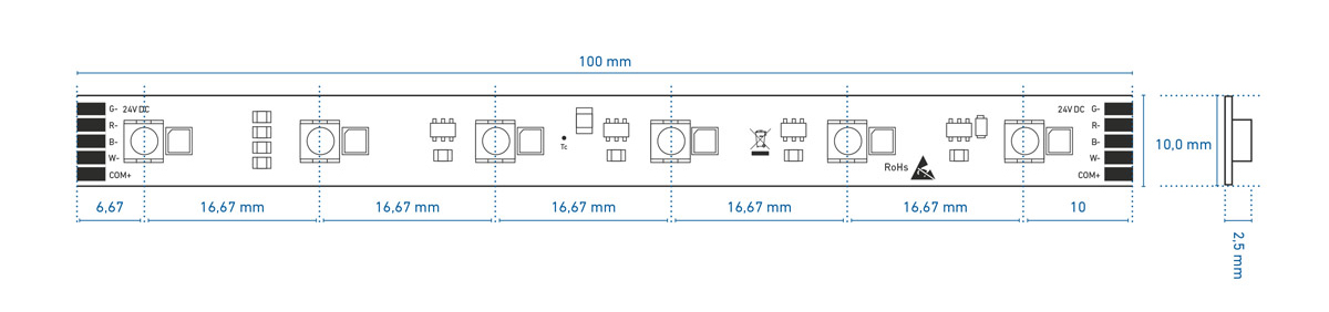 | Kabel 5-polig, mit verzinnten freien Drahtenden, 1 m - angelötet an LEDlight flex | Indoor | weiß |