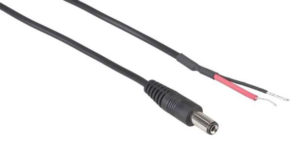| 2,1mm Rundbuchse inkl. 75cm Kabel, für Steckernetzteile, einseitig abisoliert und verzinkt, max. 5A |  |