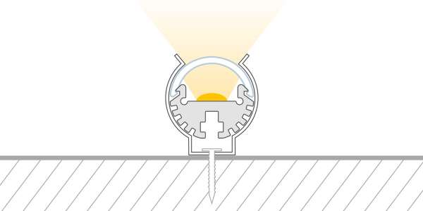 • mit halbrunder Abdeckung für einen breiten Lichtausstrahlwinkel