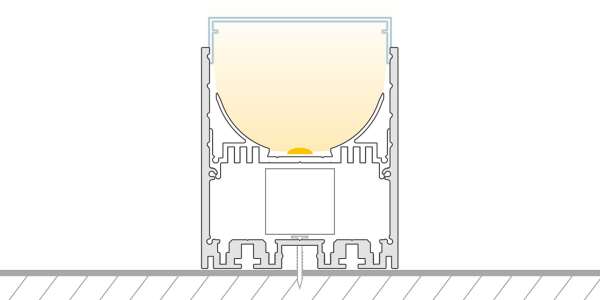 | Abdeckung satiniert, für eine diffuse Lichtverteilung bei gleichzeitigem Verbergen der Technik | 3020×73,9×18,5 mm (l×b×h) | transparent satiniert |  |