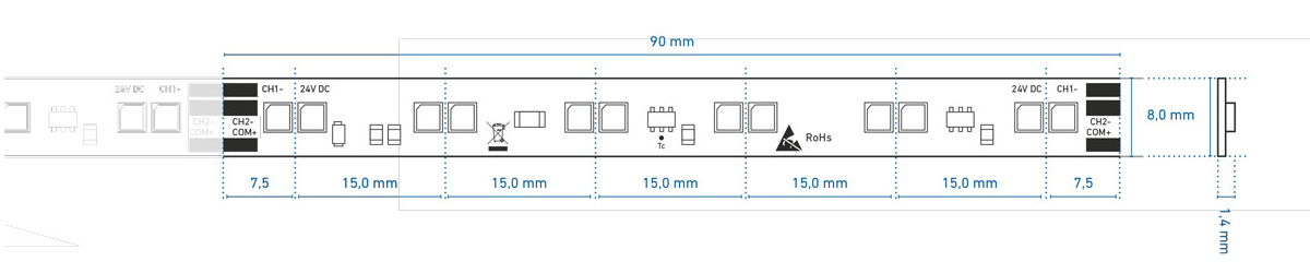 | Zweiseitiges Abisolieren und Verzinnen/Anlöten an LEDlight flex, 4-polig (zzgl. Kabel) - RGB | | | |
