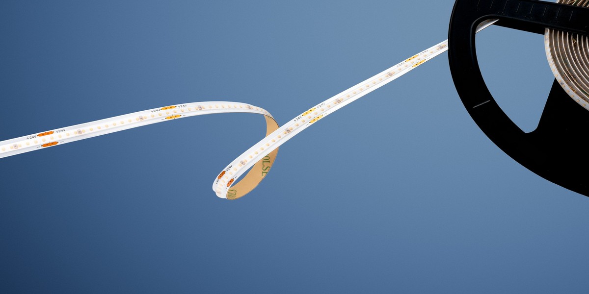 Der flexible CSP (Chip-Scale-Package) LED-Streifen mit hoher Chipdichte ist sehr gut für den Einbau in flache Profile geeignet.