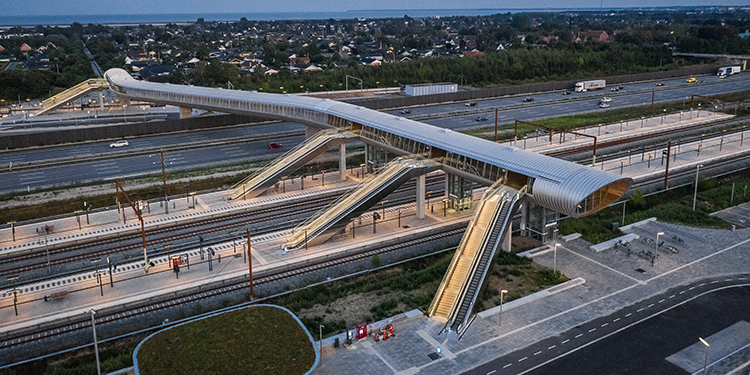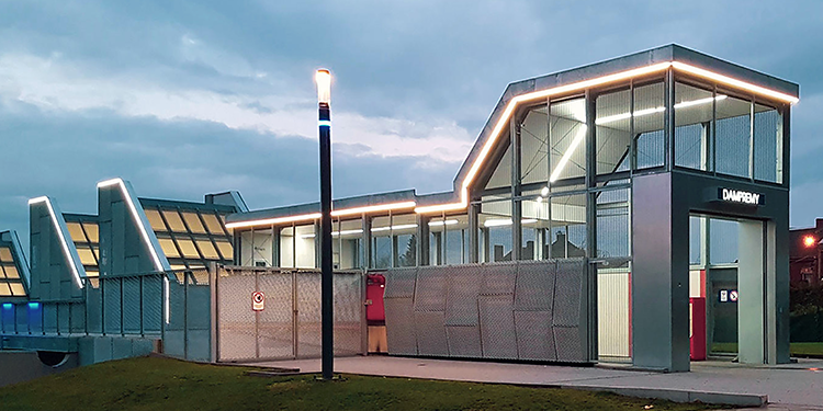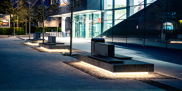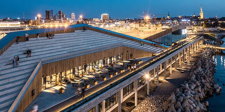 Vollvergossene AQUALUC LED-Lichtlinien illuminieren die Promenade des neuen Kreuzfahrtteminals in Tallin schattenfrei auf einer Länge von 621 m.