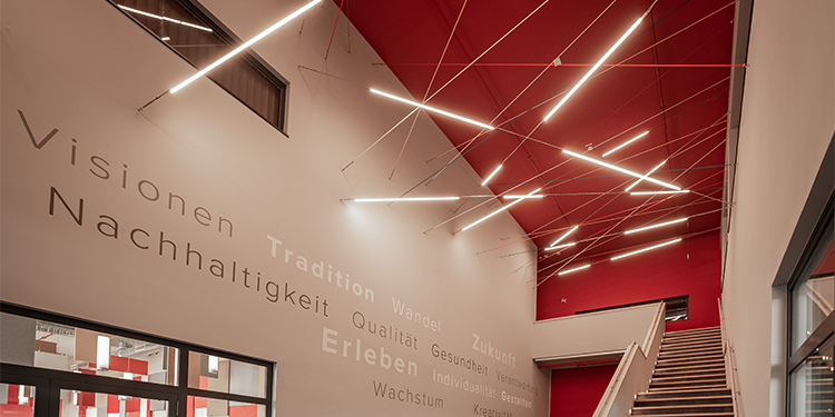 Im Eingangsbereich des Unternehmens REISS Büromöbel schaffen LED-Linearleuchten von Barthelme eine helle Atmosphäre und verbinden darüber hinaus die Tradition des Unternehmens mit dessen Erfolgsrezept.